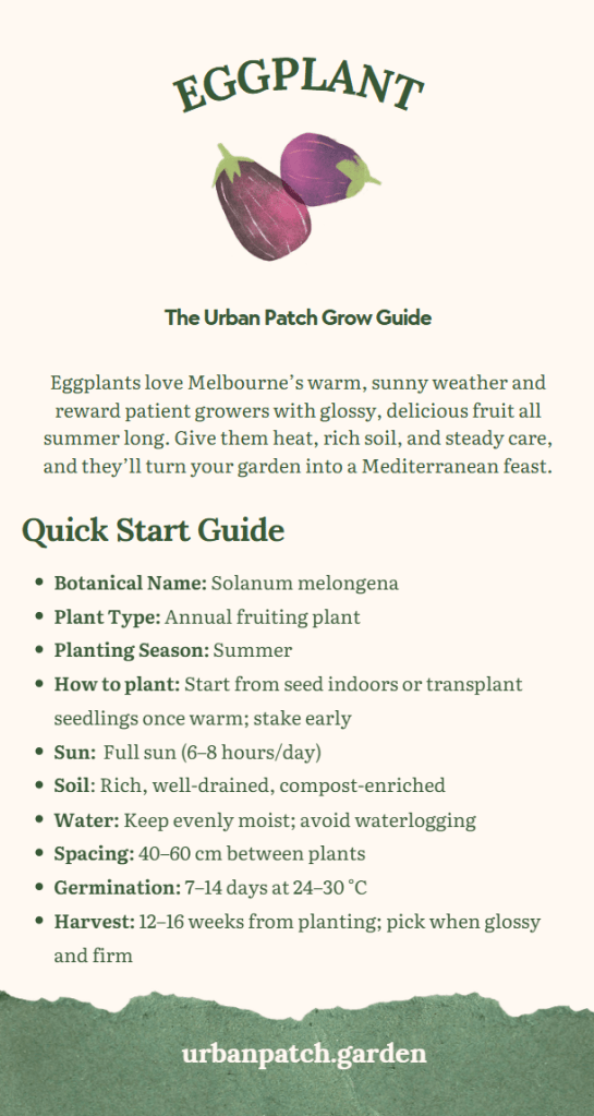 Eggplants (or aubergines, if you’re feeling fancy) are the sultry show-stoppers of the summer garden – glossy, heat-loving, and deeply satisfying to grow. They thrive in Australia’s warm months and reward a bit of care with shiny purple fruit that transforms into smoky, silky goodness on the grill or in a curry.